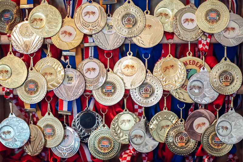 Naši proizvodi su nagrađivani brojnim zlatnim odličjima i priznanjima na međunarodnim natjecanjima kvalitete pčelinjih proizvoda.