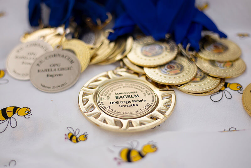 Naši proizvodi su nagrađivani brojnim zlatnim odličjima i priznanjima na međunarodnim natjecanjima kvalitete pčelinjih proizvoda.